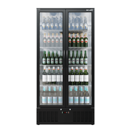 Sale price €899,00 EUR Regular price €1.999,00Unit price /UnavailableVery low stock (4 units)CUBO Display Fridge 879L - 2 Door - 10 Shelves - Glass Door - Black Interior - CS-SU1000