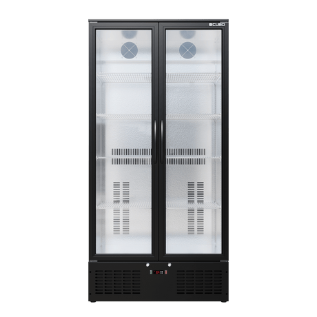 CUBO Display Fridge 776L - 2 Door - 10 Shelves - Glass Door - Black Interior - CS-SU800