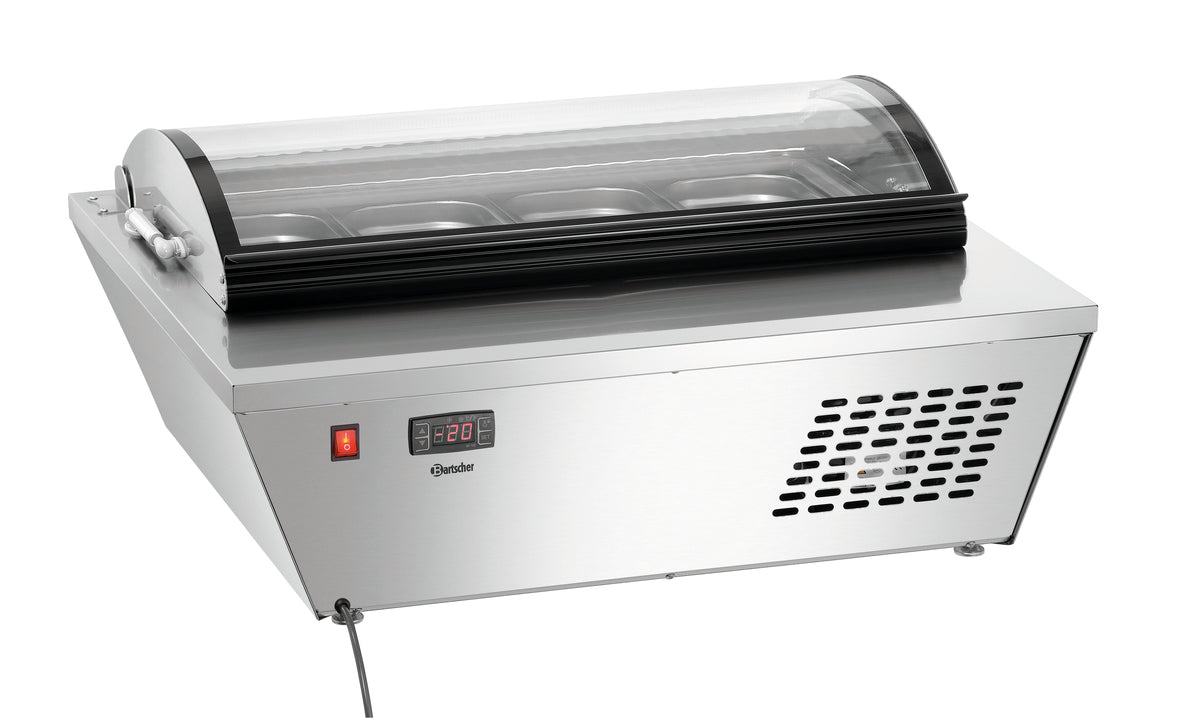• Including 4 ice cream containers, 5 litres each, W 360 x D 165 x H 115 mm, stainless steel ,3 bars: length 365 mm, width 20 mm