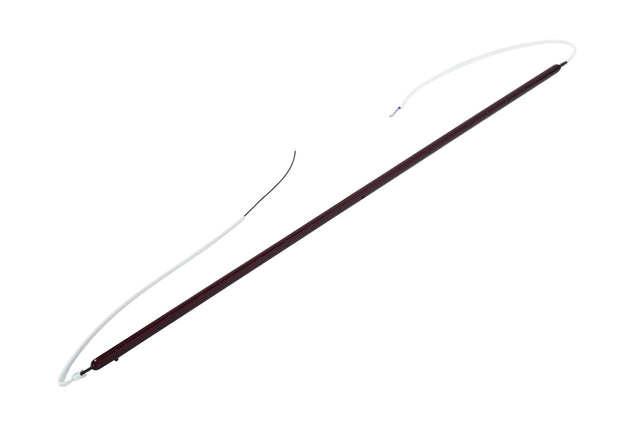Size 12w x 850d x 12h mm. Heating output 900 W. Design Infrared heated tubes (Ruby Red tubes). Important information -