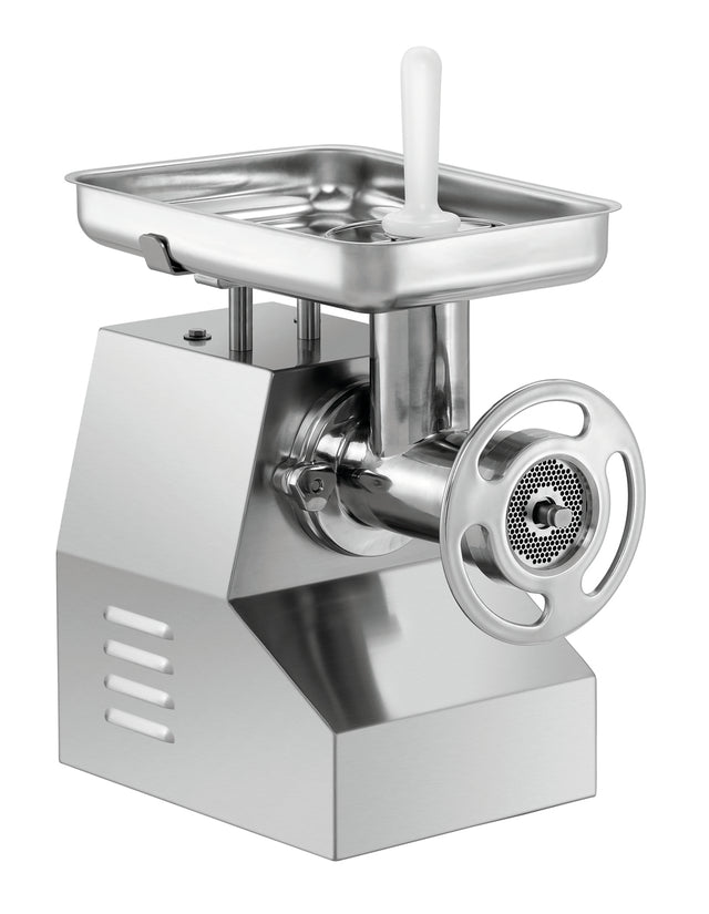 This meat grinder with Unger system, extra large filling chute, and ventilated motor can produce up to 500 kg per hour. The removeable mincing unit enables HACCP-compliant storage in the refrigerator.
