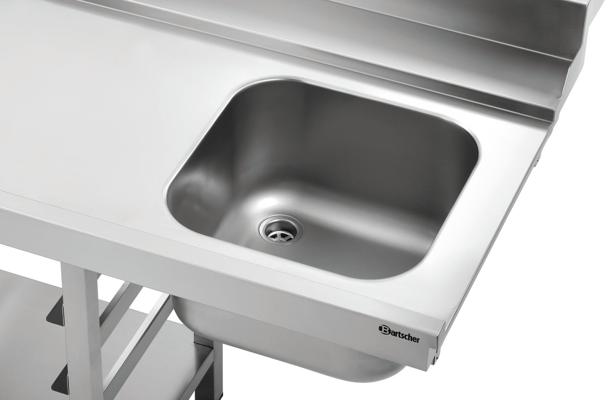 This pre-cleaning unit, which is compatible with the DS feed-through dishwashers, is fitted with a 40-litre sink and is designed for attachment on the left-hand side. 500x500 and 600x500 rinsing racks with a height of up to 145 mm can be stored in the 3 practical rack slots.