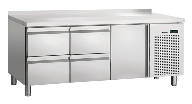 One appliance, two uses: The convection cooling ensures a constant, even refrigeration temperature inside this single-door, four-drawer refrigerated counter. Thanks to its high-quality and robust stainless steel surface, the appliance can be integrated perfectly into any kitchen and can also be used as a work surface.