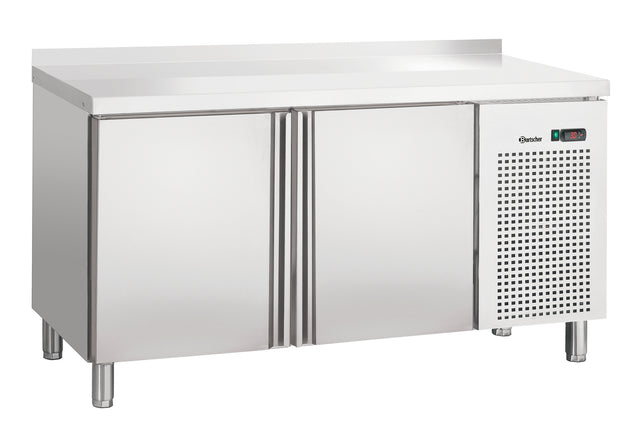 One appliance, two uses: The convection cooling ensures a constant, even refrigeration temperature inside this double-door refrigerated counter. Thanks to its high-quality and robust stainless steel surface, the appliance can be integrated perfectly into any kitchen and can also be used as a work surface.