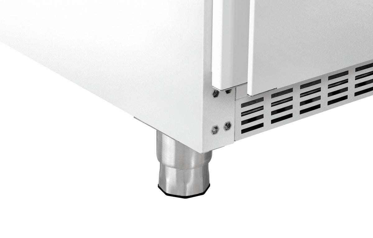 This lockable refrigerator with its slightly textured surface is a special eye-catcher in any professional kitchen. With 5 height-adjustable grills, the interior can be equipped to suit your specific needs. The perfect temperature can be set easily and intuitively in steps of 0.1°C via the display.