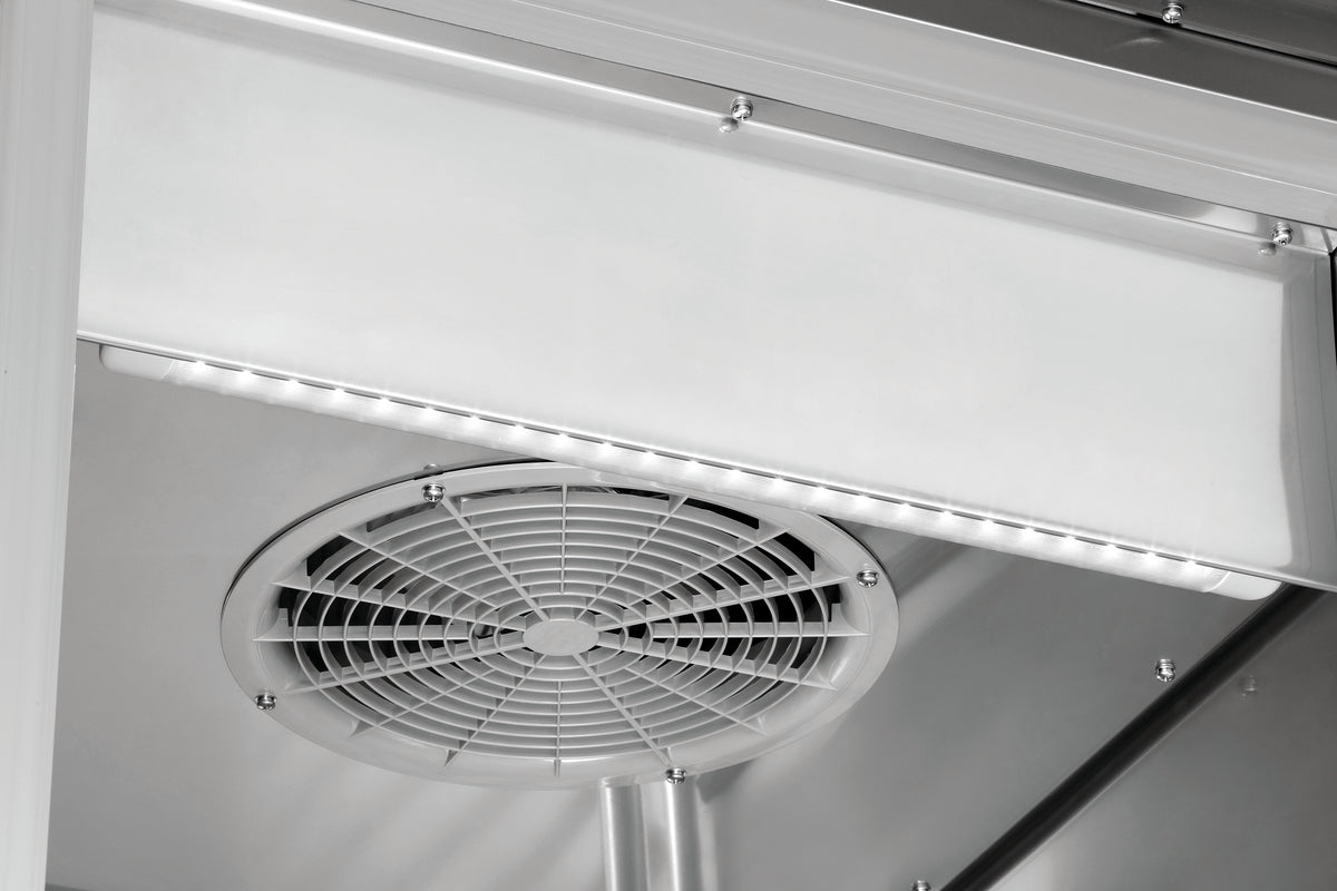 Spacious and clever – the stylish stainless steel refrigerator has a volume of 700 litres in 2/1 GN format for maximum refrigeration space. An alarm sounds to indicate that the cold chain will be interrupted if the refrigerator door is left open for too long.