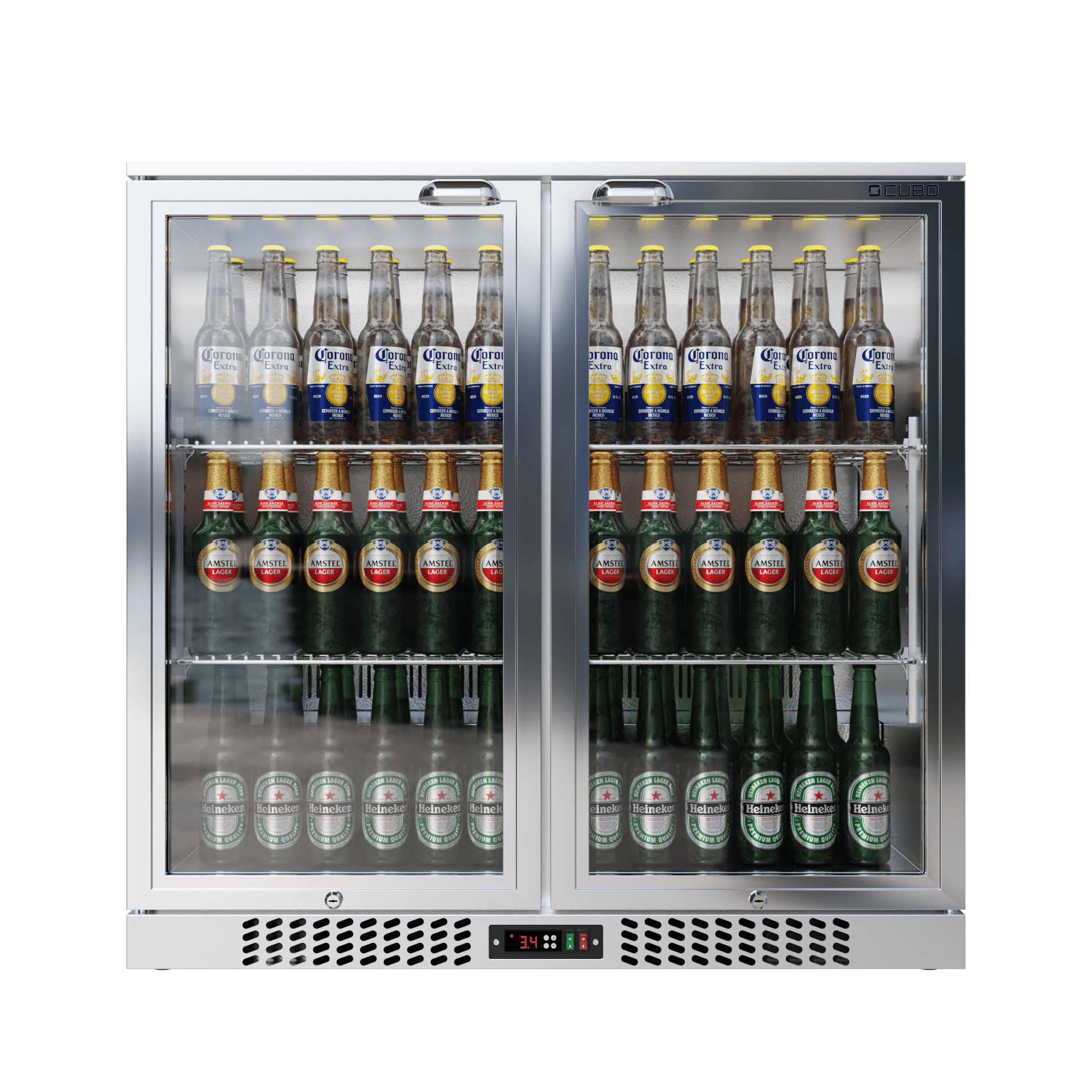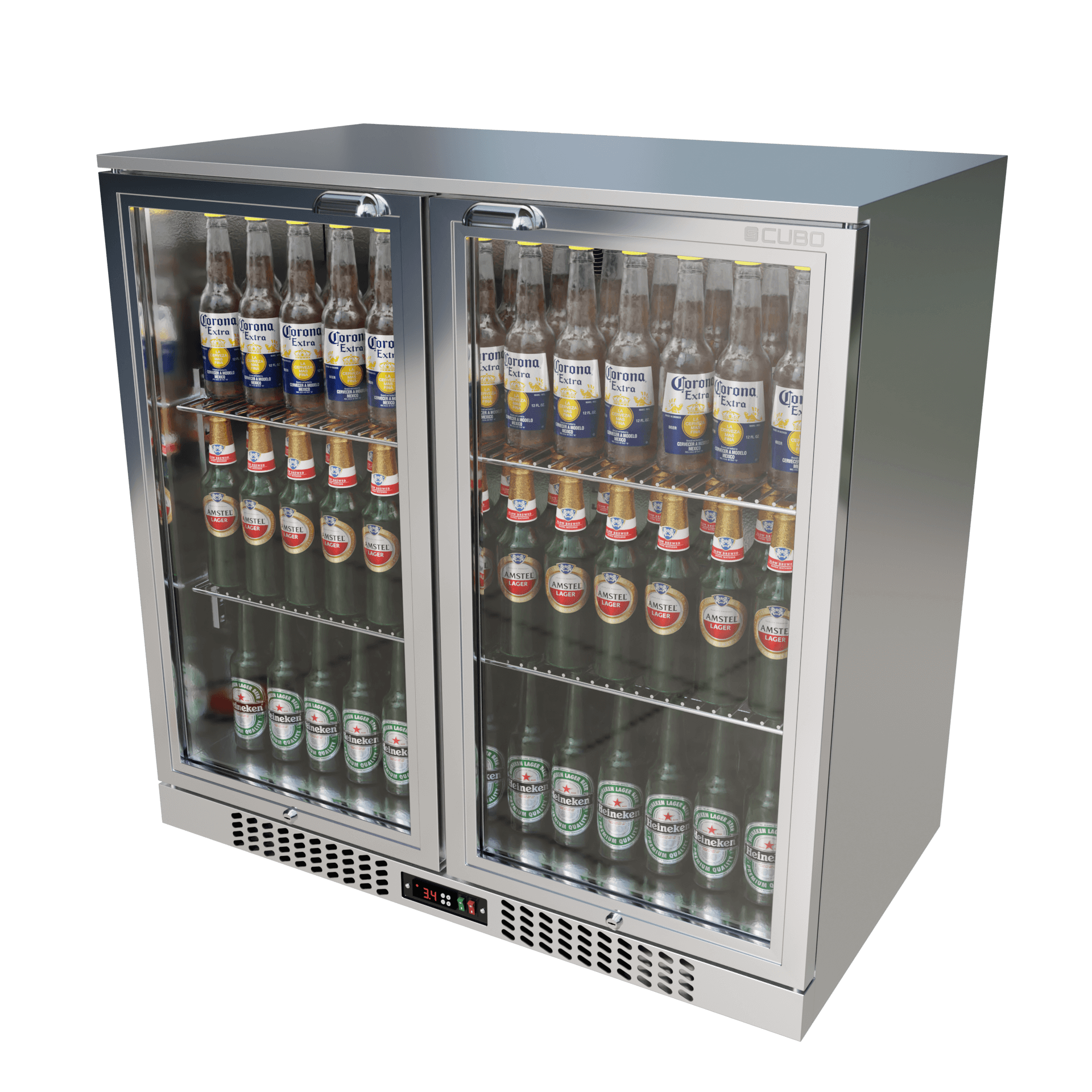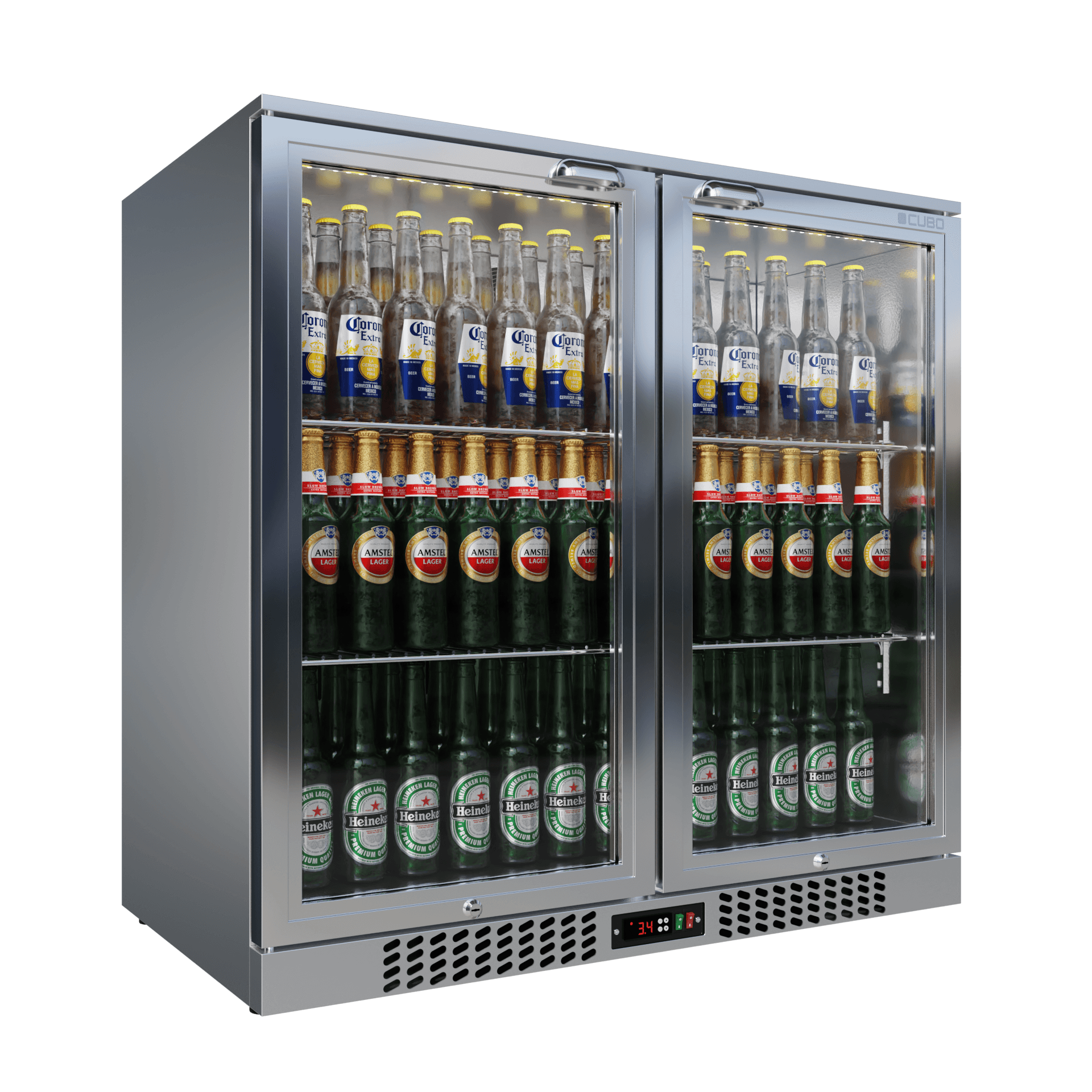 CUBO Bar Fridge 207L - 2 Hinged Glass Doors Stainless Steel - Lockable - 195 bottles - Energy Efficient - CS-210H-S-EE