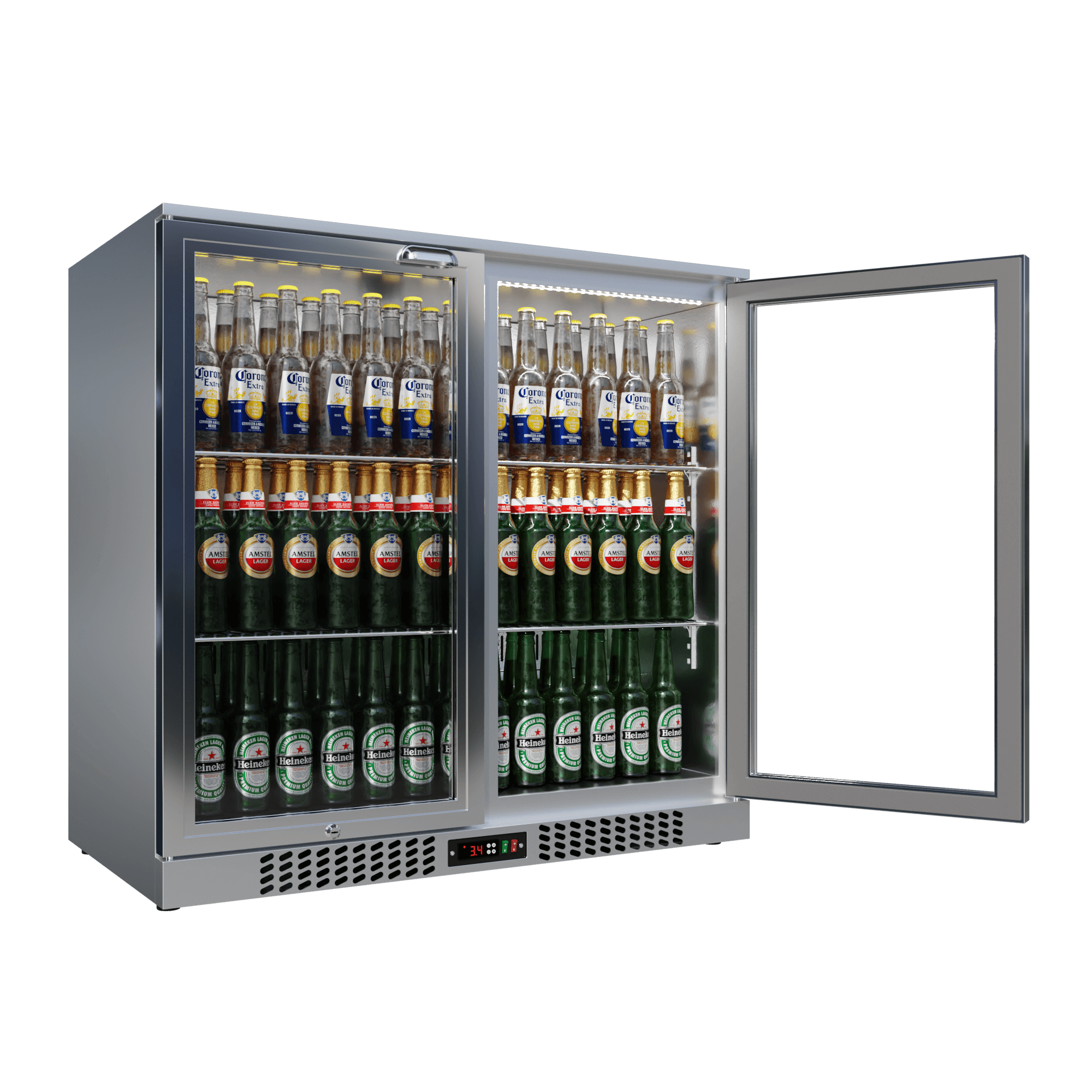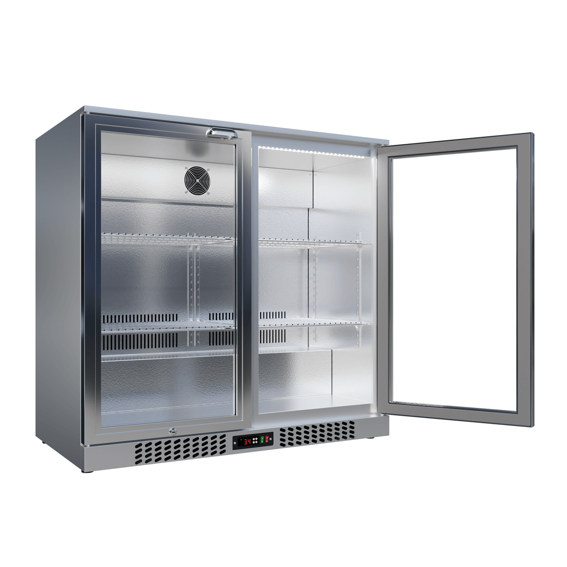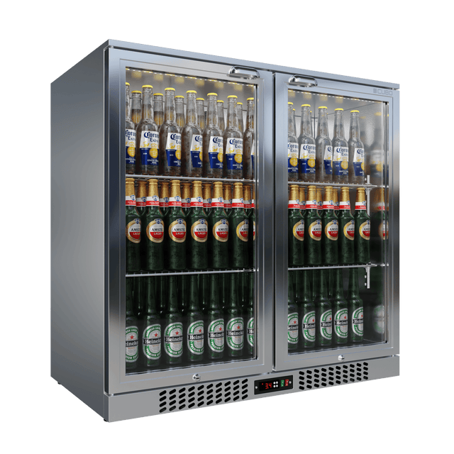 It’s more than just a fridge—it’s your new back bar best friend. With stylish stainless steel doors, a silver body and LED lighting that screams “buy me” to your customers, it’s perfect for showing off your craft beers, wine, and anything else worth cracking open. And with two large, double-glazed, lockable glass doors, you’re not just getting style—you’re getting security and top-tier functionality.