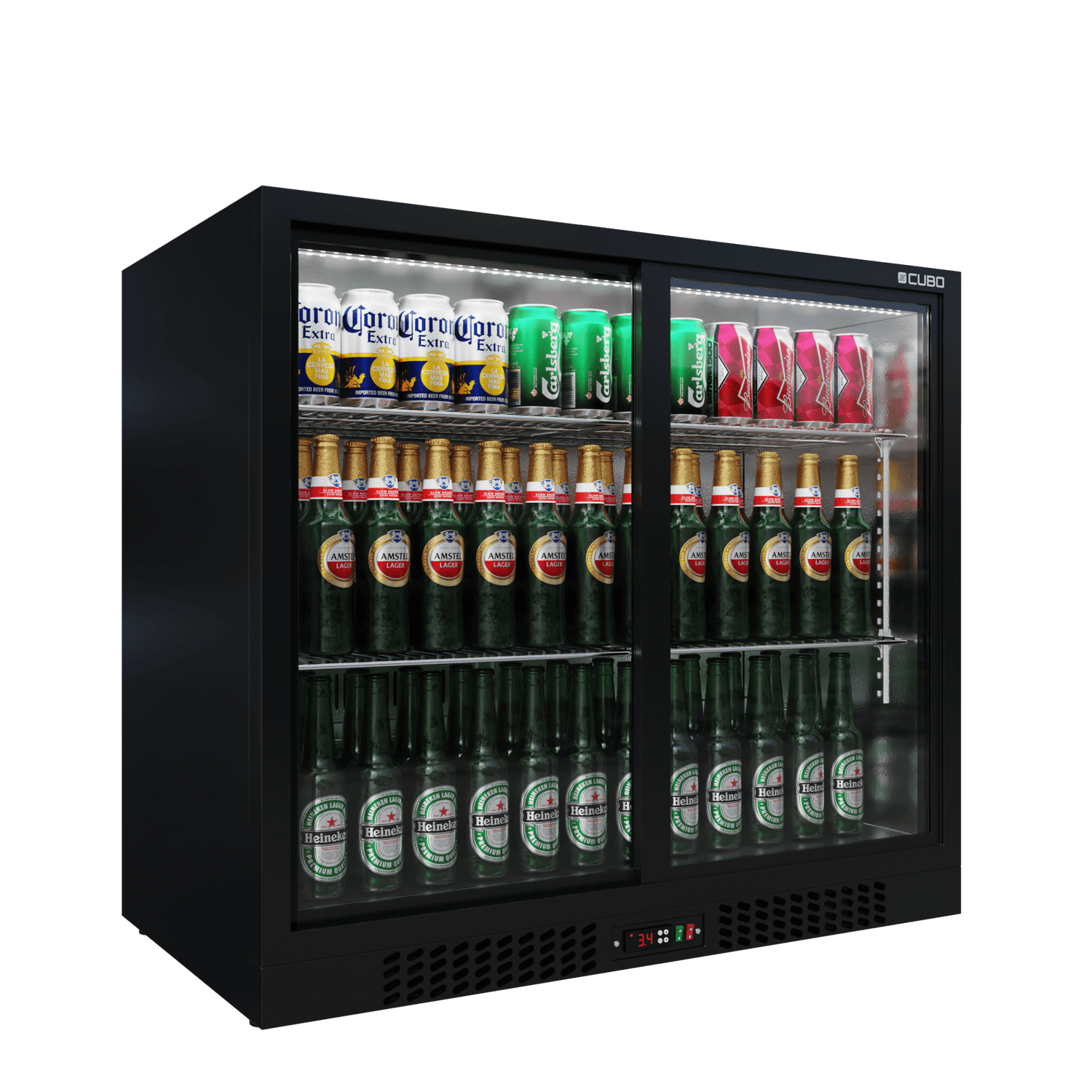 CUBO Bar Fridge 188L - 2 Sliding Glass Doors with Low Profile - Lockable - CS-210SC-EE