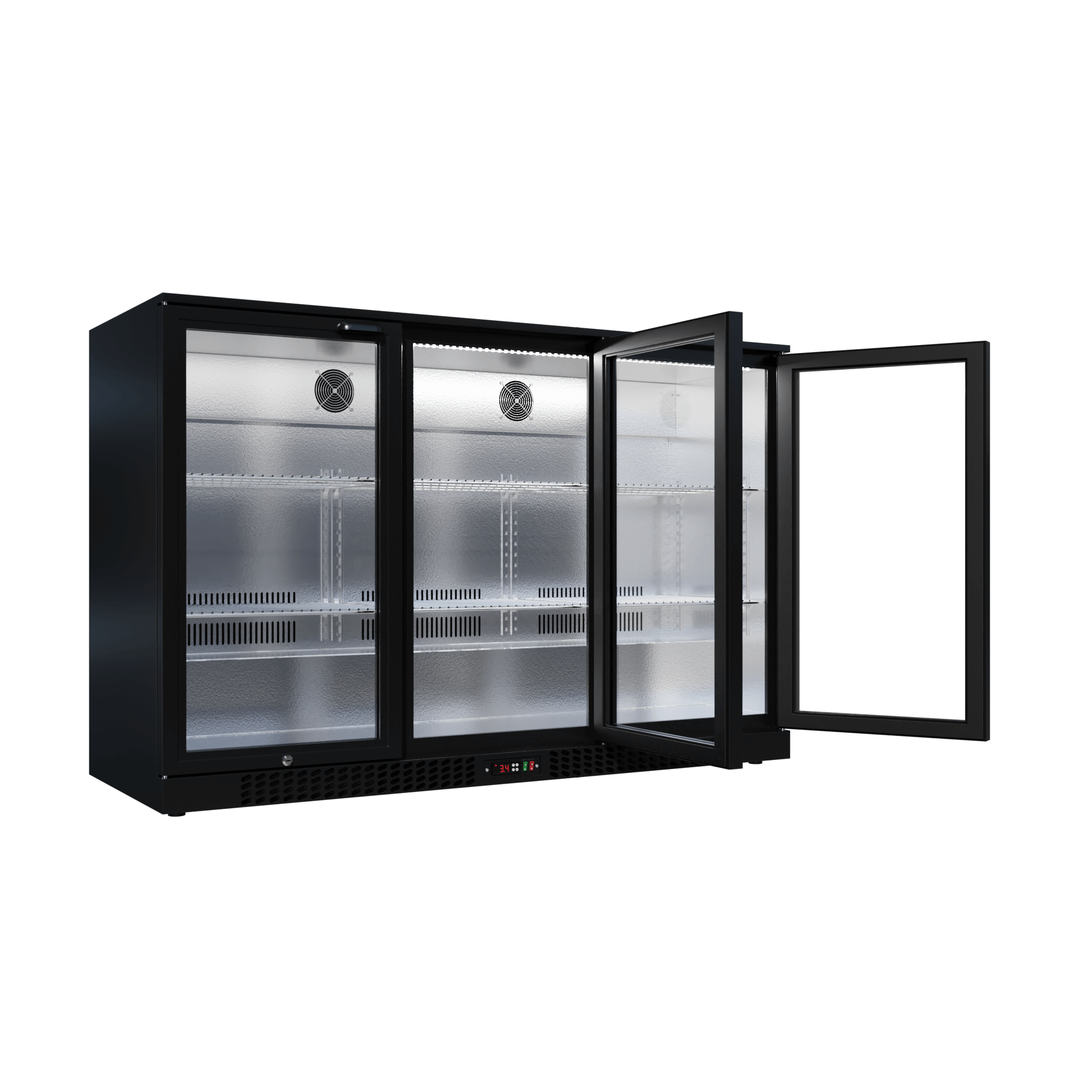 • Doppelt verglaste, abschließbare Glastüren : Robust gebaut. Sie sind langlebig, sicher und ermöglichen Ihnen die Präsentation Ihrer Waren ohne Beschlagen – dank beschlagfreiem Low-E-Glas