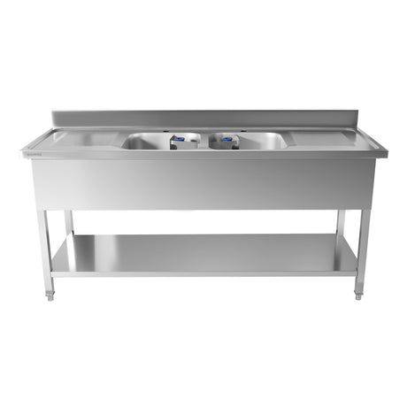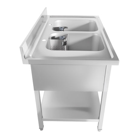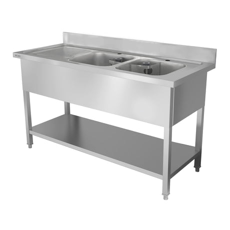 Optimieren Sie Reinigungs- und Lagerraum mit Edelstahlspülen mit Ablage, konzipiert für Großküchen, Bäckereien und Gastronomiebetriebe. Diese vielseitigen Spüleneinheiten verfügen über Stauraum unter der Ablage und bieten einfachen Zugriff auf Reinigungsmittel, Utensilien und Zubereitungswerkzeuge und sorgen gleichzeitig für einen aufgeräumten Arbeitsplatz.