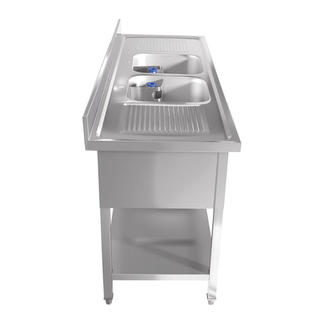 Normaler Preis €429,00 EURGrundpreis /Nicht verfügbarSehr geringer Bestand (5 Einheiten)CUBO Stainless Steel Double Sink with Left Drain Board 1500mm CS-SSWB-1500
