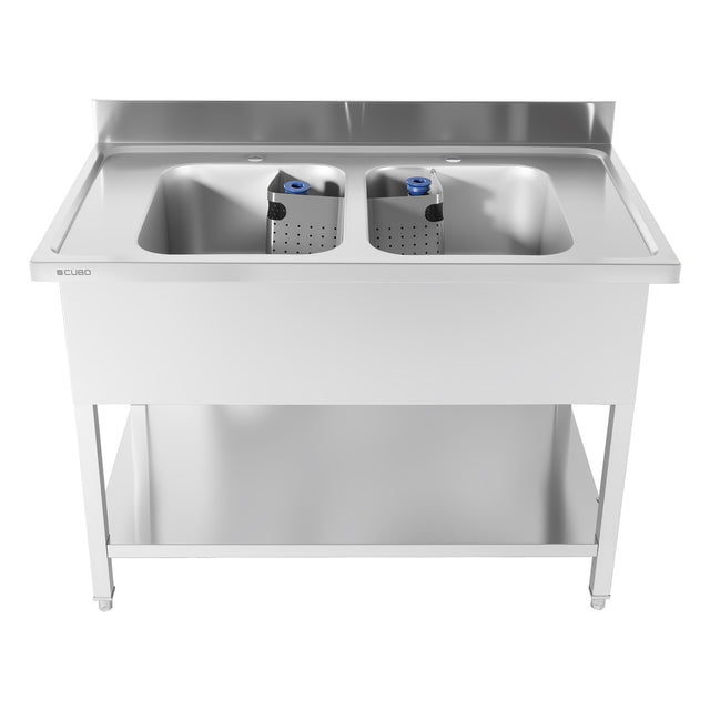 The CUBO Stainless Steel Double Sink is a heavy-duty and efficient solution for washing, rinsing, and food preparation in commercial kitchens, restaurants, catering environments, and food service operations. Featuring two large bowls, it allows for high-capacity washing and improved workflow during busy service periods.
