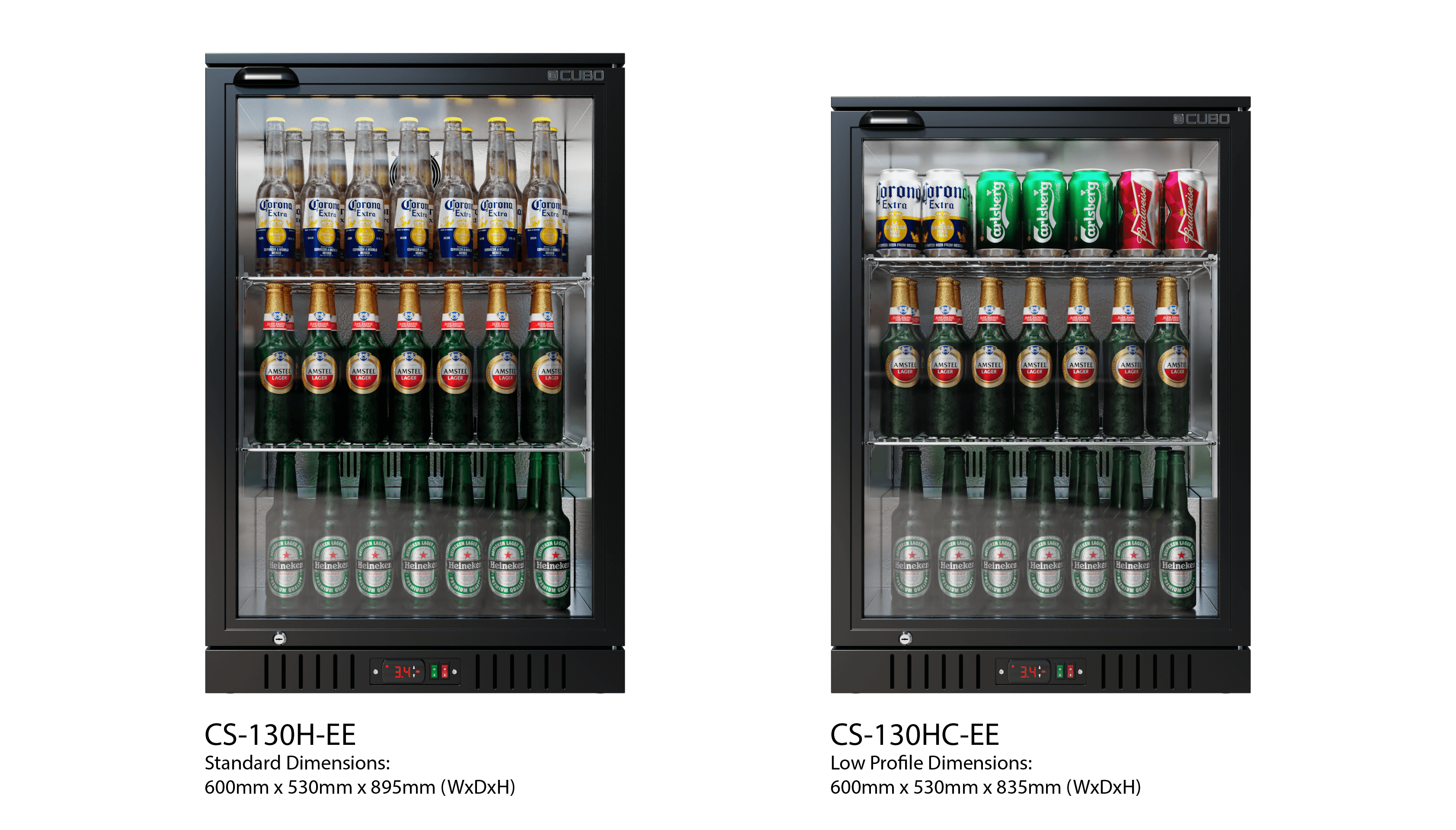 CUBO Barkoelkast 121L - 1 glazen deur met laag profiel - Afsluitbaar - Energiezuinig - CS-130HC-EE