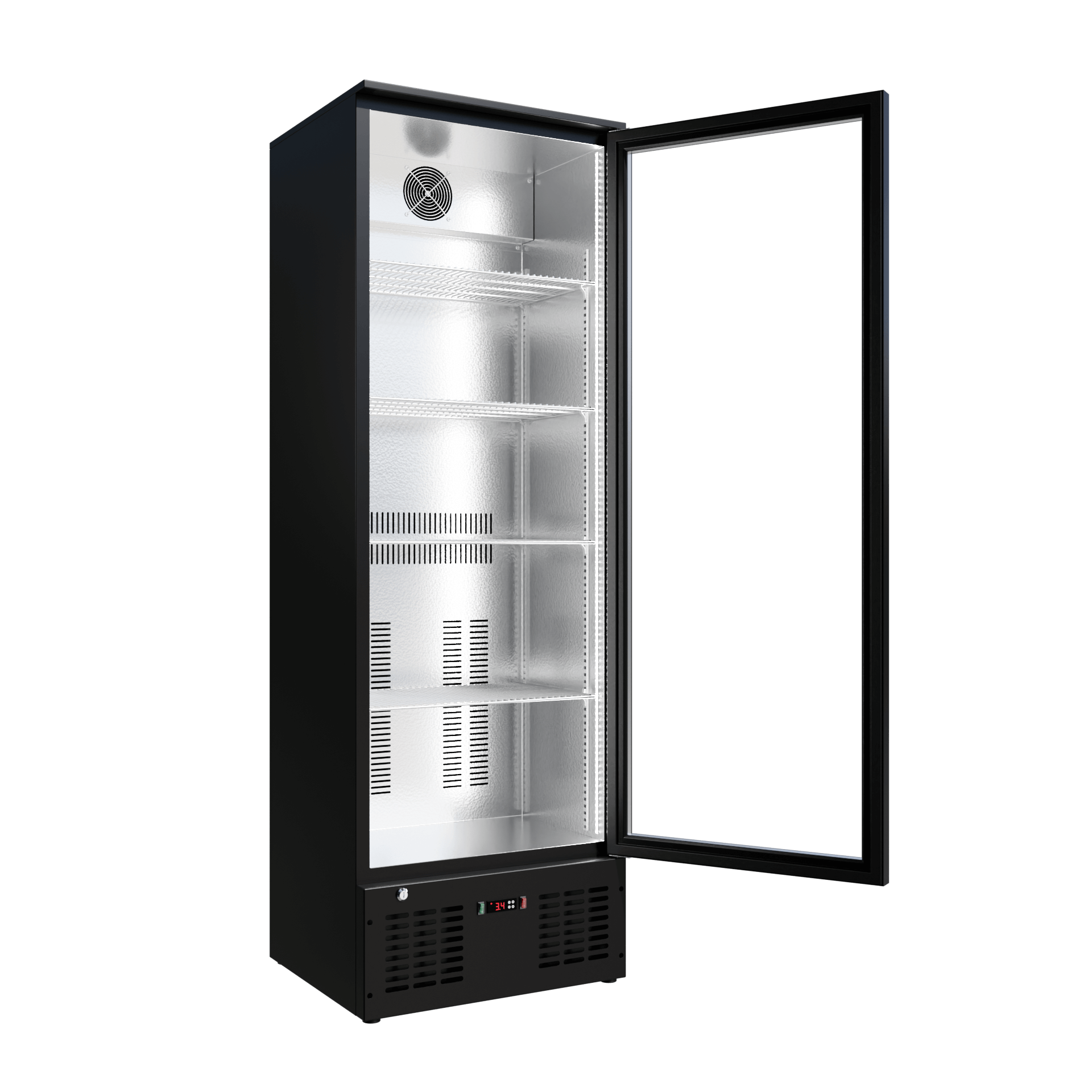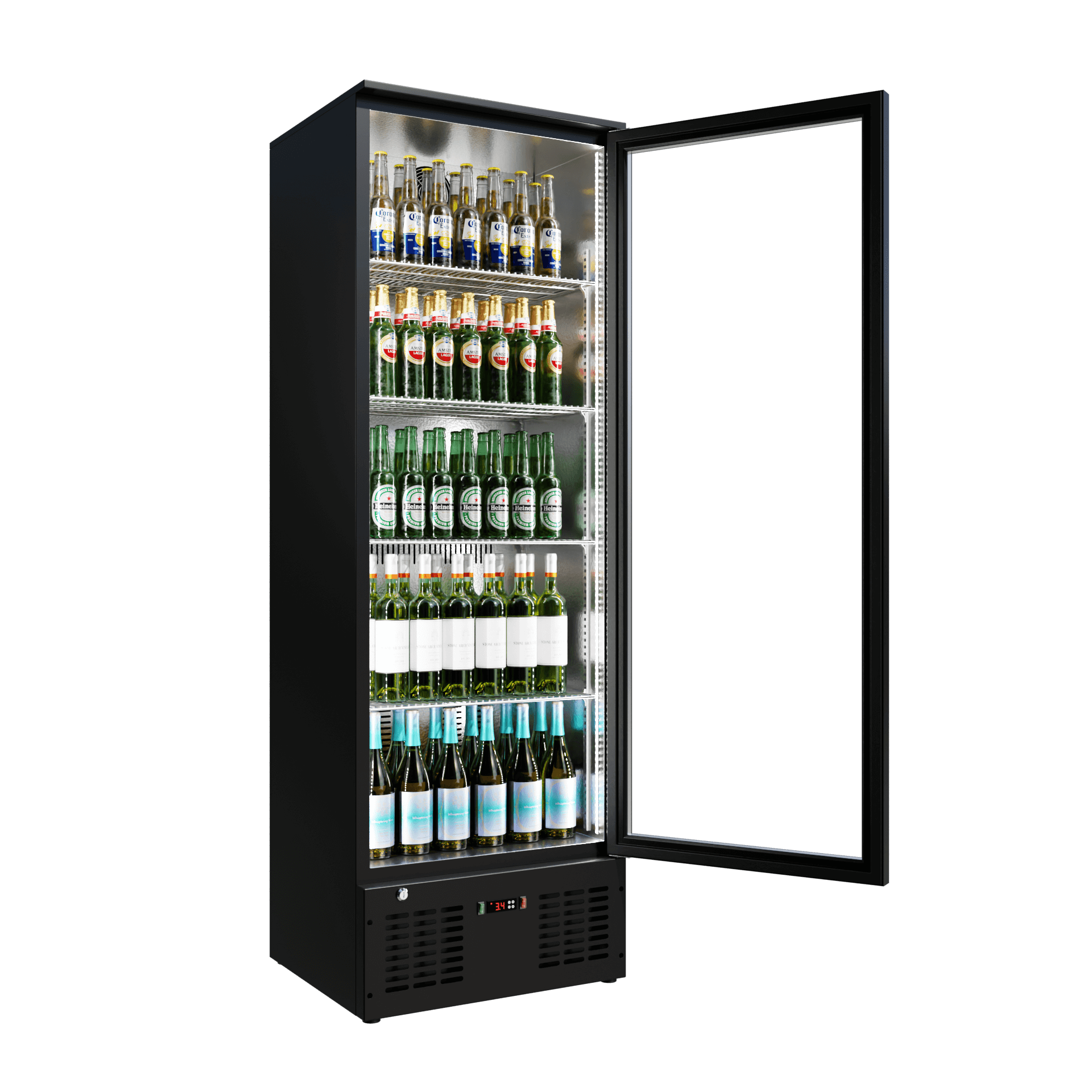 Cubo Drankenkoelkast 300L - Zwart met RVS binnenkant - 1 glazen deur met LED-verlichting - Afsluitbaar met slot - Energiezuinig - CS-310H is nabesteld en wordt verzonden zodra het weer op voorraad is.