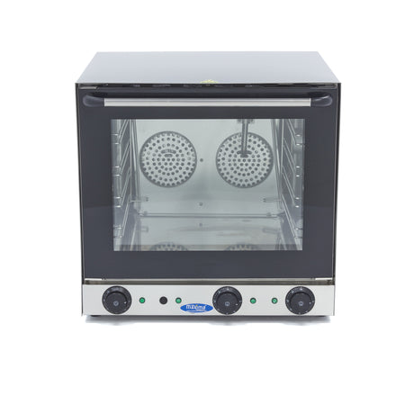 Een commerciële heteluchtoven of heteluchtoven is een zeer veelzijdige kookmachine die wordt gebruikt om taarten, gebak, brood en andere soortgelijke gerechten snel te bereiden. Net als bij een combi-oven wordt de warmte gelijkmatig door de kast verdeeld om de kooktijden te versnellen en voor een gelijkmatige, perfect gebruinde afwerking te zorgen. Geen gedoe meer met de timing van elke plank.
