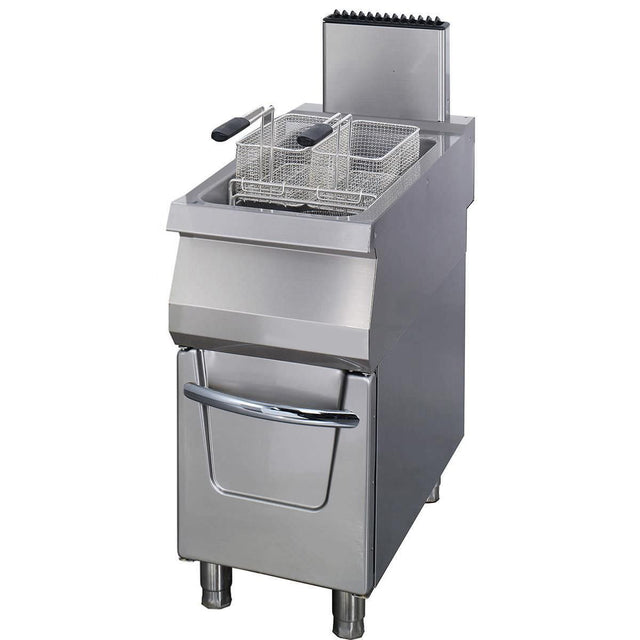 Deze krachtige friteuse werkt op gas (LPG of aardgas) en is in te stellen op een temperatuur tussen de 110 en 190⁰C. Door het ergonomische en hygiënische ontwerp is het een fijn apparaat om mee te werken. Voor de veiligheid is er een gasveiligheidsklep met thermokoppel ingebouwd. Verder is de friteuse voorzien van een waakvlam. Ook beschikt de frituurpan over een aftapkraan, zodat de frituurolie eenvoudig verwijderd kan worden. De frituurpan wordt standaard geleverd met een RVS deksel en frituurmandje.