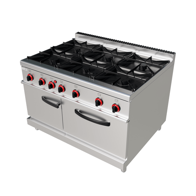 CUBO Gasfornuis 27kW - 6-pits - incl. statische gasoven 8kW - Diepte 90cm - Hoogwaardig model - CS-90-QQ-6-M