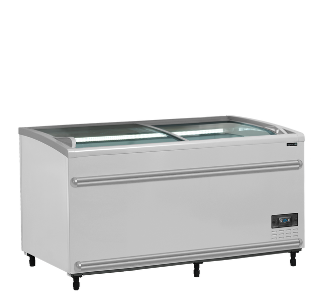 De SFI-CF-serie supermarktkoel-/vrieskasten zijn verkrijgbaar in verschillende kleuren en bieden een goed zicht op de producten binnenin dankzij de gebogen glazen schuifdeksels. De inhoud wordt verlicht door ledverlichting op de achterwand van de vriezer. Verstelbare valse bodems tussen de verdelers maken het mogelijk om de hoogte van de bodem in de kast te vergroten, zodat deze er altijd helemaal gevuld uitziet. Perfect voor supermarkten, kruidenierswinkels, slagers etc.